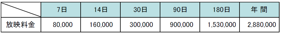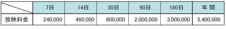 ■放映回数 15秒CM×4回/時間 56回/日