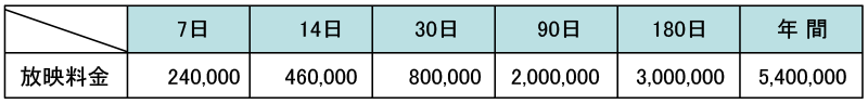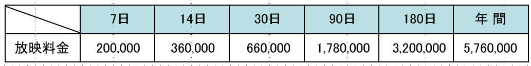 ■放映回数 15秒CM×4回/時間 40回/日(90%保障)